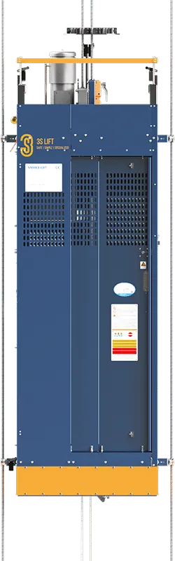 通过减速机与钢丝绳摩擦力提供动力,实现升降机的上升或下降。