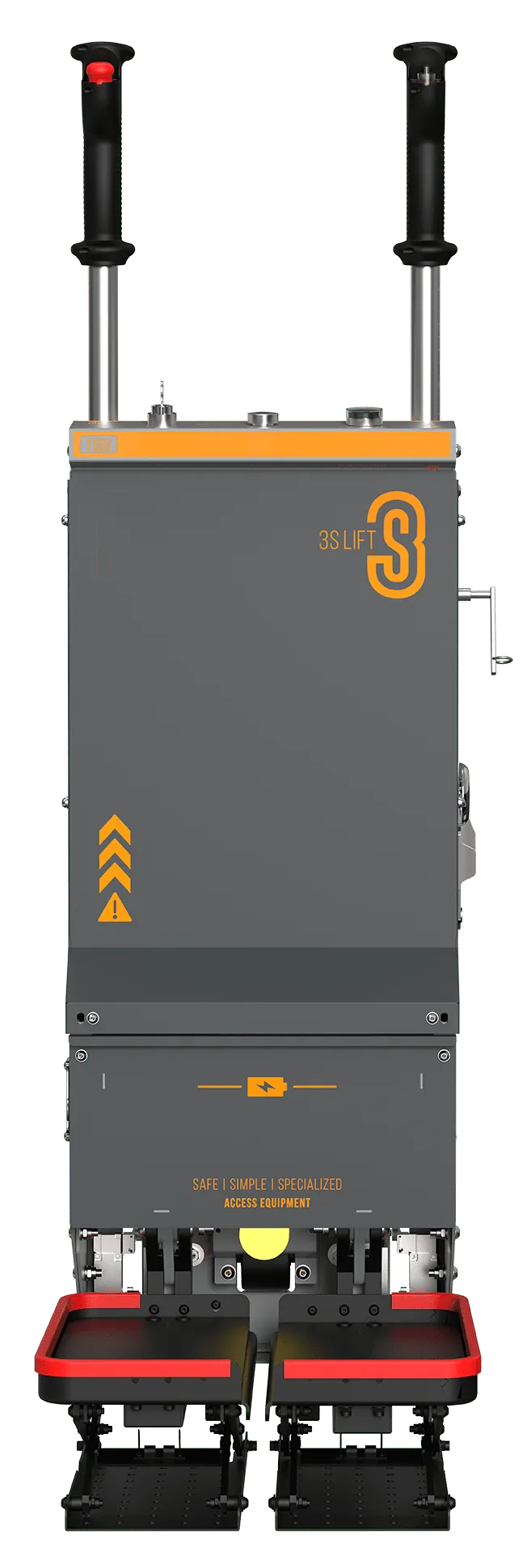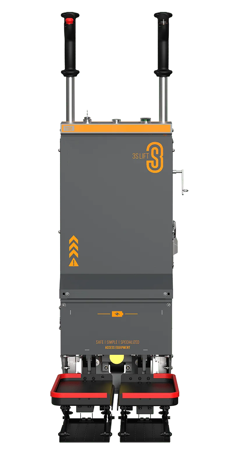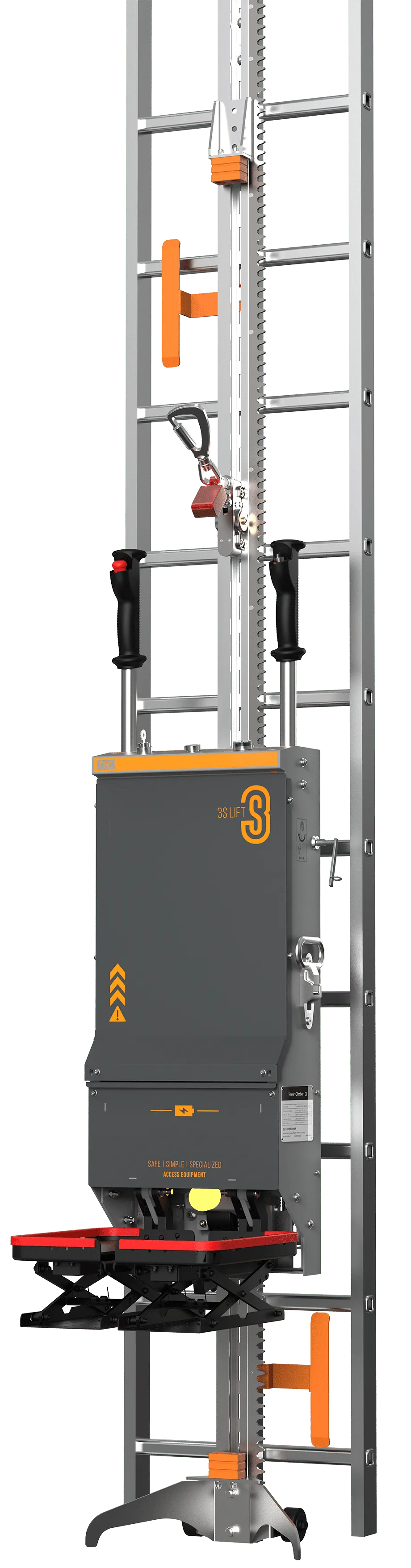 人员防坠器连接轨道与人员安全带,当发生坠落时,人员瞬间自由落体,触发锁块卡在导轨槽内,完成机械锁止,进而阻止人员下坠。