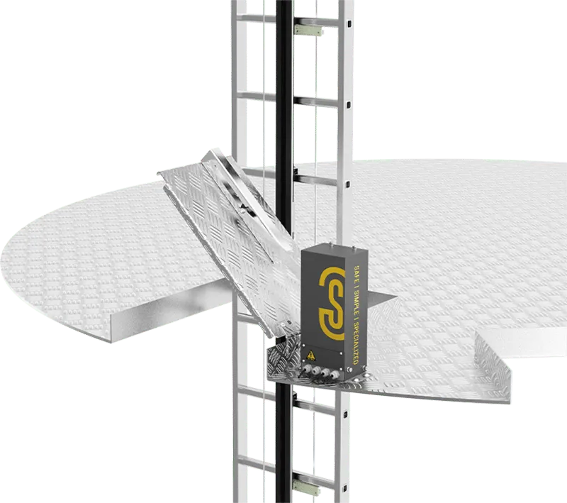 安装在平台上方,配合人员手动攀爬方式,可通过触发装置控制盖板的开闭。
