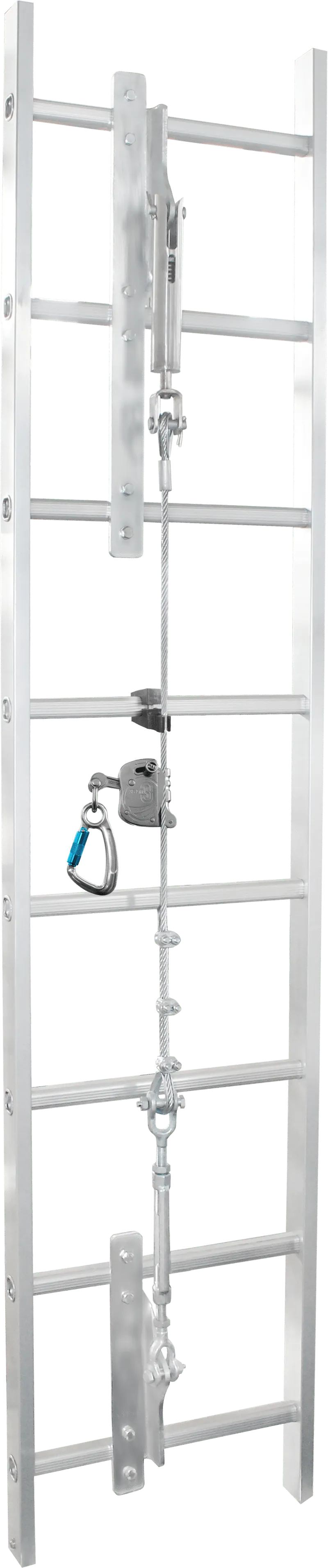 钢丝绳通过耐用、长寿命的安装支架固定在梯子的顶部。